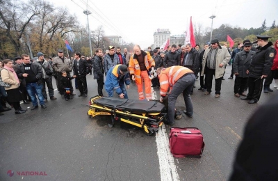 De asemenea, unii martori au spus că persoana a fost lovită de cineva, chiar dacă acolo erau prezenţi reprezentanţi ai forţelor de ordine. Cert este că alţi manifestanţi comunişti îi interziceau fotografului Ziarului NAŢIONAL să facă poze cu cei căzuţi pe asfalt.