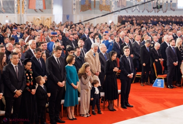 Maia Sandu participă la slujba de sfințire a picturii Catedralei Naționale din București, alături de înalți ierarhi ai Bisericii Ortodoxe