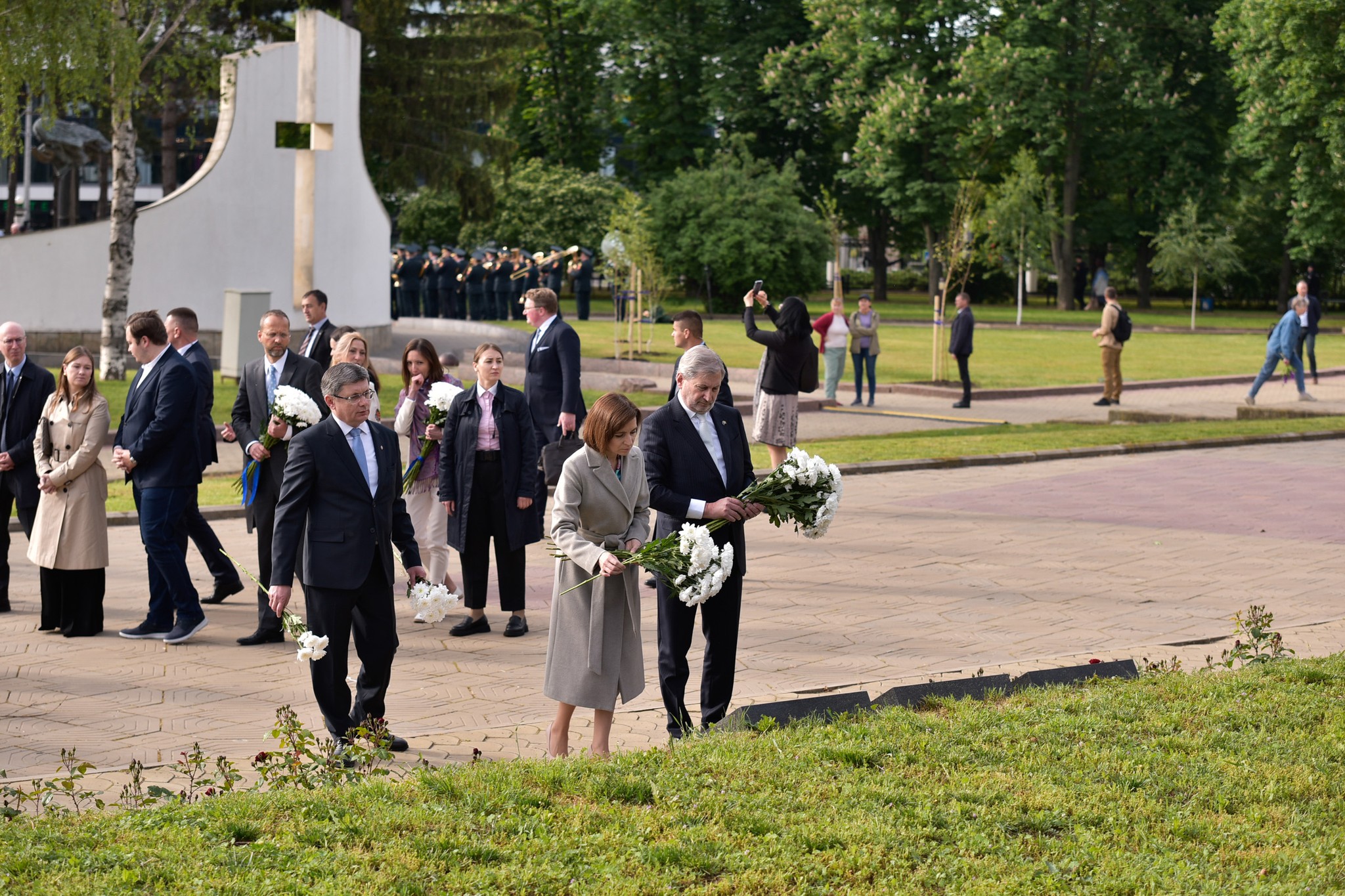 Președinta Maia Sandu, președintele Parlamentului, Igor Grosu, comisarul european pentru Buget și Administrație, Johannes Hahn, au depus jerbe de flori la „Maia Îndurerată”, fiind urmați de miniștrii Apărării și Afacerilor Interne, Anatolie Nosatîi și Adrian Efros, directorul Serviciului de Informații și Securitate, Alexandru Musteața, Ambasadorul UE la Chișinău, Janis Mazeiks, funcționari, veterani și persoane civile.