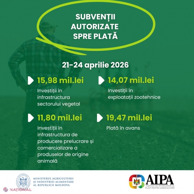 Peste 77 de milioane de lei în subvenții, autorizate pentru agricultură și zootehnie în doar patru zile