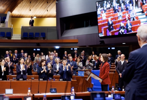 Maia Sandu avertizează la Consiliul Europei asupra celor două războaie care amenință democrațiile europene: agresiunea Rusiei și războiul hibrid al dezinformării