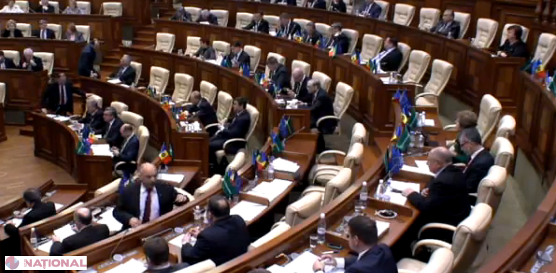 Toți deputații din fracțiunea Partidului Liberal Democrat și-au pus pe mesele din sala de ședințe a Parlamentului accesorii noi – trei stegulețe care reprezintă drapelele R. Moldova, Uniunii Europene și simbolul formațiunii din care fac parte.