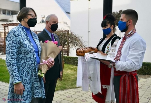 FOTO // Noul AMBASADOR al SUA a sosit în R. Moldova. Kent D. Logsdon, întâmpinat cu pâine, sare şi cu un pahar de vin moldovenesc