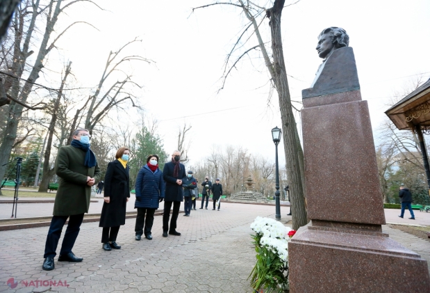 FOTO // Cu flori, în centrul Chișinăului: „Noi, basarabenii, suntem o mână de oameni, ne strângem în jurul lui Eminescu, fiindcă el este chintesența vieții noastre”