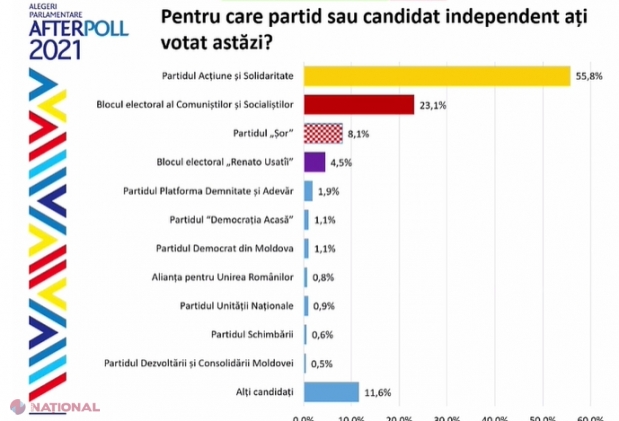 VIDEO // Rezultatele finale AFTER POLL 2021: „PAS ar putea avea chiar MAJORITATE CONSTITUȚIONALĂ cu voturile din DIASPORĂ: PAS - 55,%, BeCS - 23,1% și Partidul „ȘOR” - 8,1%. Alți concurenți electorali nu ar trece PRAGUL
