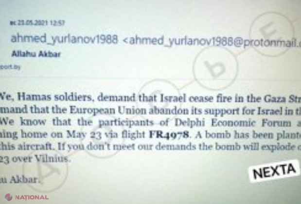 Gafă a KGB-ului? Ameninţarea cu bomba prin e-mail atribuită de Belarus grupării Hamas a fost trimisă după ce deturnarea avionului Ryanair începuse