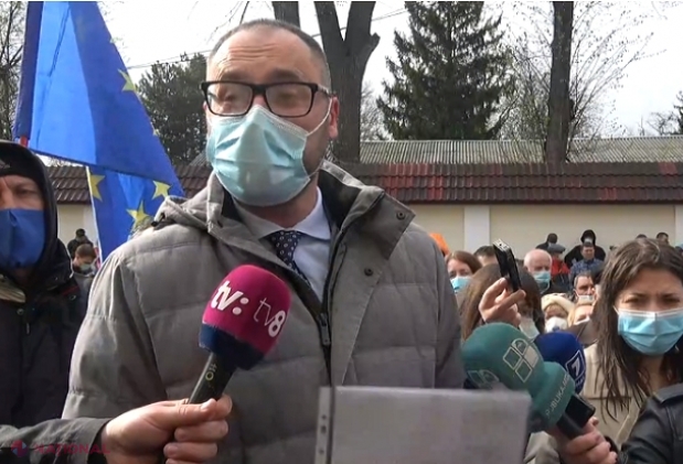 VIDEO // Blocul ACUM, refăcut în fața CC. PAS și PPDA, front comun în încercarea de a împiedica intrarea lui Boris Lupașcu, votat de PSRM-ȘOR în funcția de judecător, în sediul Înaltei Curți