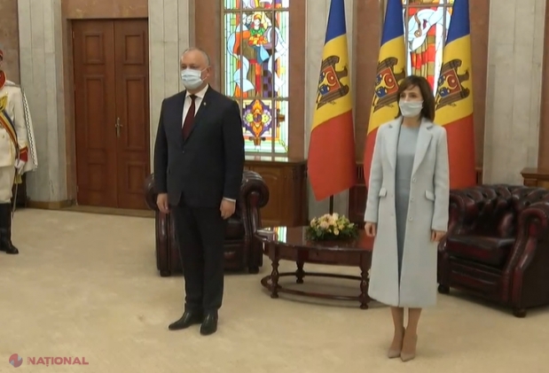 VIDEO // Maia Sandu s-a întâlnit la Președinție cu Igor Dodon, însă întrevederea nu a durat nici cinci minute. Cei doi NU au dat mâna la despărțire