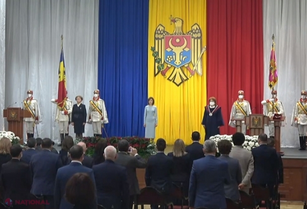 VIDEO // Președinții Mircea Snegur și Nicolae Timofti, ALĂTURI de Maia Sandu la ceremonia de învestire. Flori pentru mama președintelui și lacrimi: „Voi fi un președinte al dreptății și al integrării europene”
