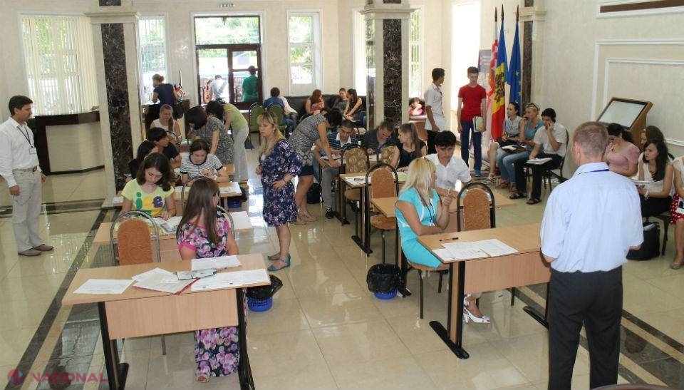 La Universitatea de Stat din R. Moldova rândul se termina la poartă. Viitorii stundenți păreau nervoși și nerăbdători să-și depună actele și, ca să nu piardă rândul, s-au înscris pe liste de aşteptare. Cele mai solicitate facultăți au rămas, ca și în anii precedenți: Dreptul, Limbile Străine și Economia, chiar dacă taxa pentru contract bate la buzunar.