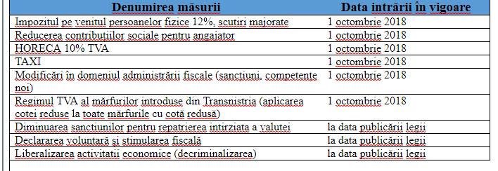 facebook Începând de astăzi, 1 octombrie, intră în vigoare o serie de amendamente la legislația fiscală, care au fost votate de Parlament la 27 iulie 2018, în cadrul așa-numitului „pachet pro-business”.