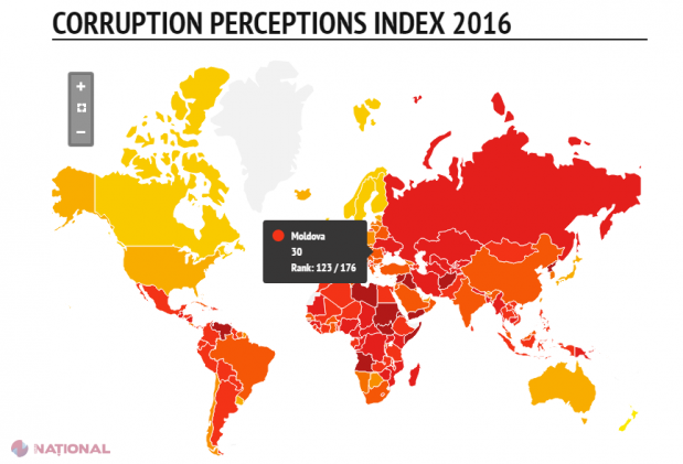 R. Moldova a coborât 20 de poziții în clasamentul privind Indicele Percepţiei Corupţiei pentr...