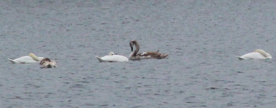 Trei dintre lebede sunt de un alb imaculat, iar două păsări au penaj cafeniu. Cel mai probabil, acestea vor ierna pe lac și ar putea zbura odată cu încălzirea vremii.