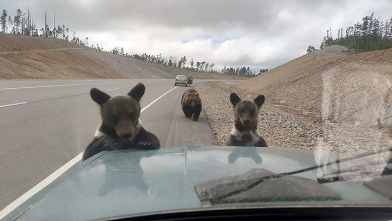 Animalele sălbatice și-au părăsit habitatele naturale și au invadat șoselele. Pe rețelele sociale au apărut imagini cu urși care se plimbă printre mașini în căutare de hrană.