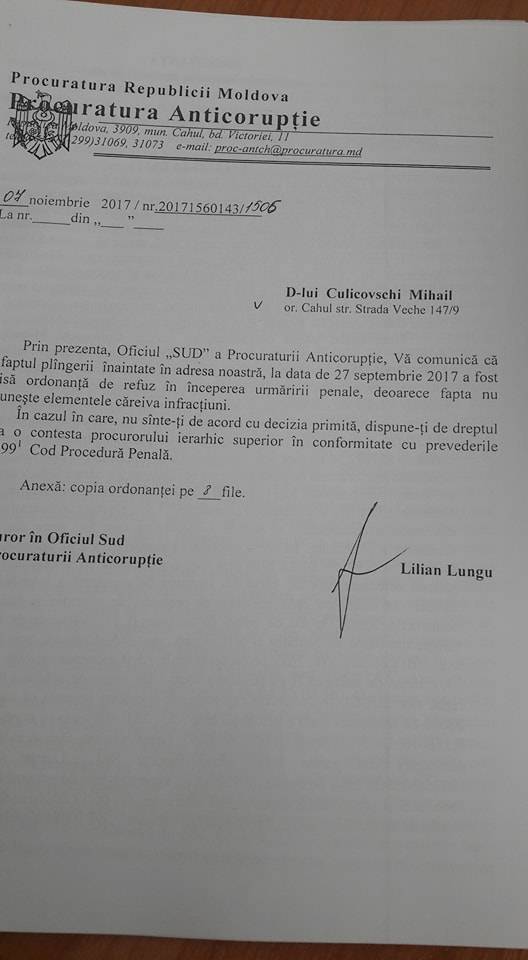 Polițistul adaugă faptul că „toate controalele au fost efectuate în baza plângerii lui Ghindă și a lui Culicovschi”: „Și unul a depus plângere, și al doilea”.