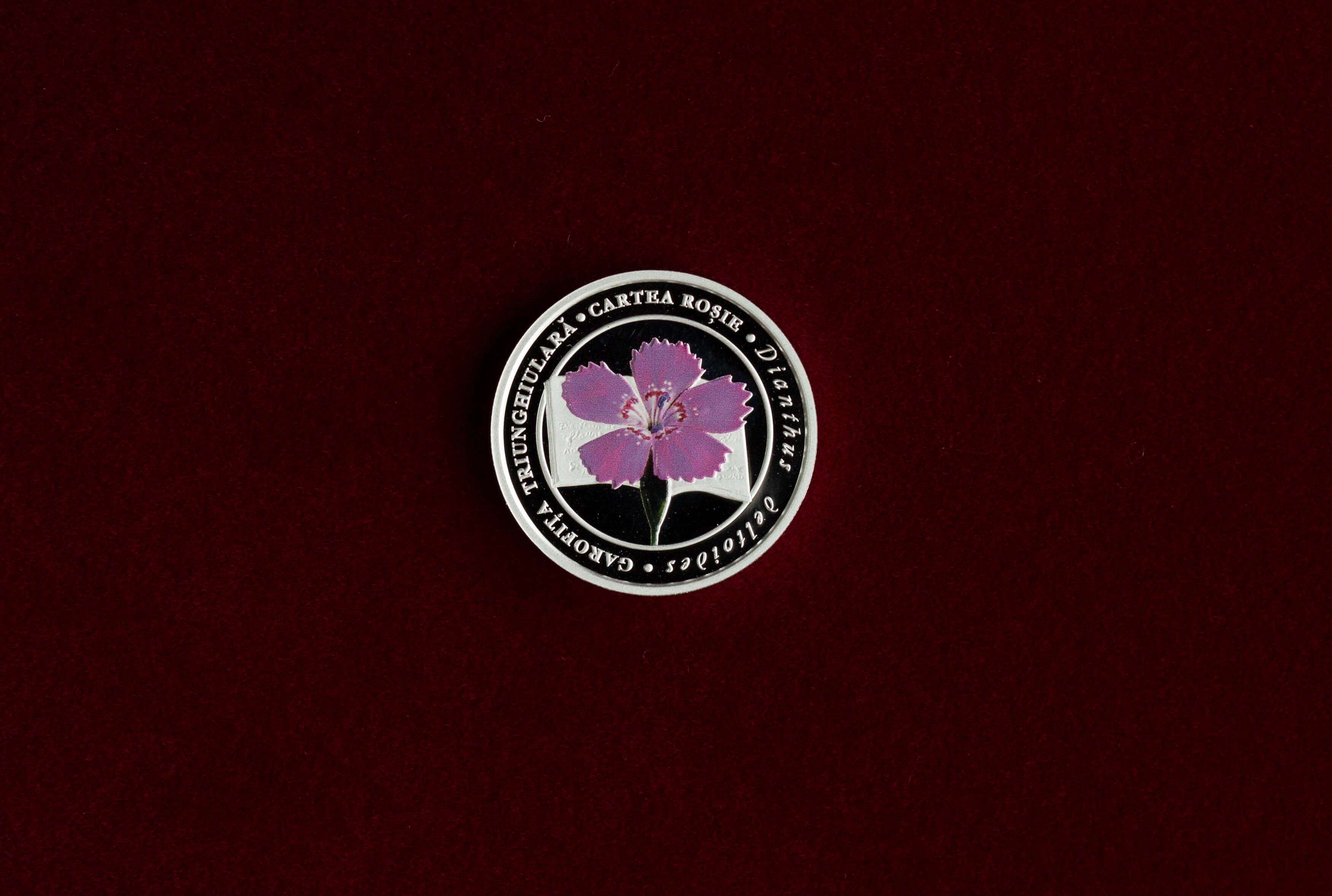 Pentru prima oară, în colecția monedelor comemorative și jubiliare apare o lucrare executată în culori. Moneda din argint „Garofița-triunghiulară”, specie de plantă erbacee, va completa seria „Cartea Roșie a Republicii Moldova”.
