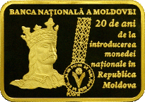Moneda comemorativă din aur dedicată celor 20 de ani de la introducerea monedei naționale în R. Moldova, emisă în anul 2013, este cea mai scumpă dintre toatec cele 50 puse în vânzare de Banca Națională a Moldovei.