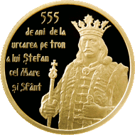 Și moneda comemorativă din aur dedicată celor 555 de ani de la urcarea pe tron a lui Ștefan cel Mare și Sfânt, emisă în 2012, are un preț asemănător - 12 327 de lei.