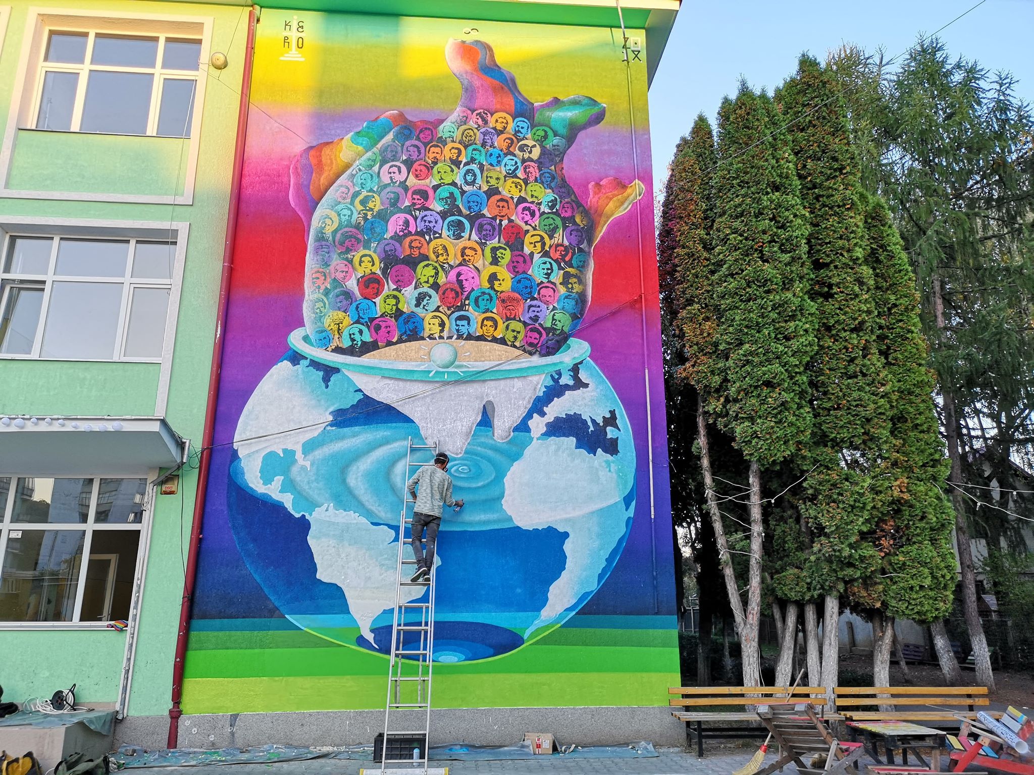 CENTENAR INEDIT: 100 de personalităţi, pictate pe peretele unui liceu de artişti stradali şi de voluntari