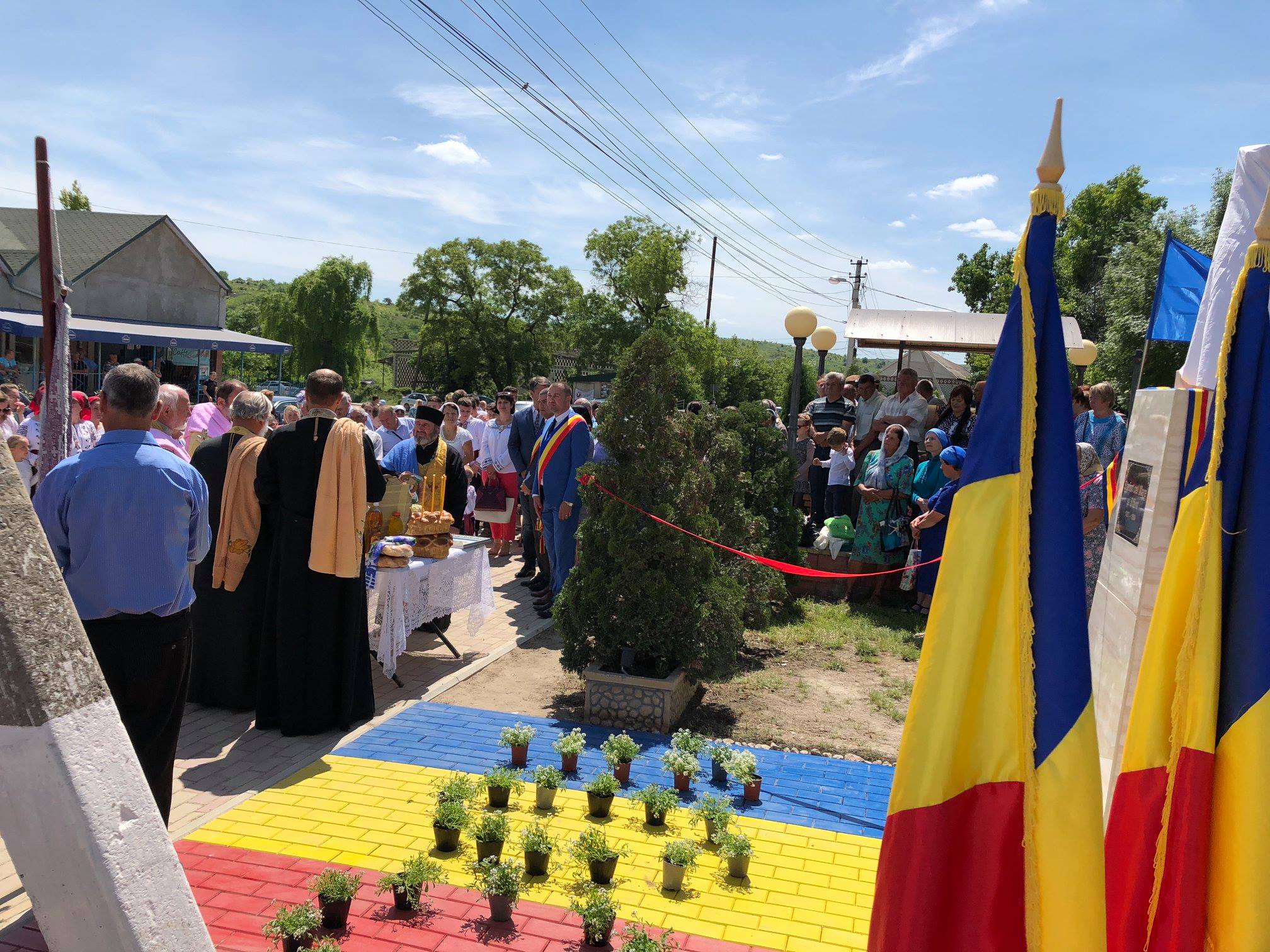 Pavajul din fața monumentului a fost vopsit în culorile tricolorului, iar cifra 100, simbolizând Centenarul Marii Uniri, a fost „desenată” din flori.