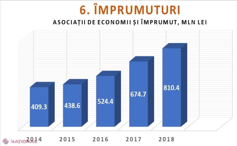 Pe lângă organizațiile de creditare nebancară, pe piață mai activează 268 de Asociații de Economii și Împrumut, care se adresează unui număr concret de clienți-membri. În 2018, acestea au oferit membrilor săi împrumuturi în sumă de 810 milioane de lei, în creștere cu peste 20% comparativ cu 2017.