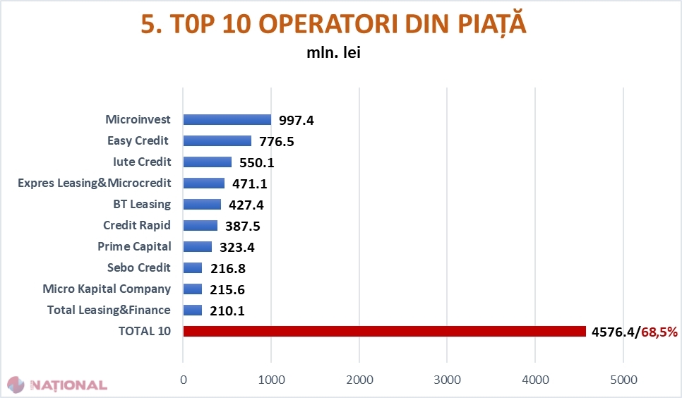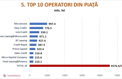 Cea mai mare parte din piață le revine la 10 operatori, care împreună dețin o cotă de peste 68% din totalul creditelor acordate, iar primii trei împart o cotă de 35%.