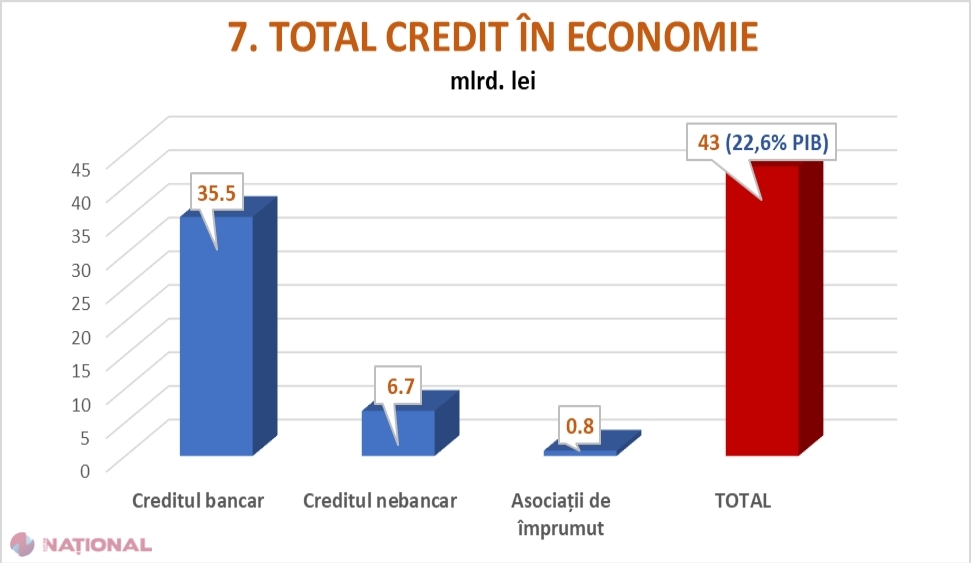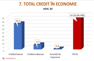 Cumulate, toate aceste segmente arată că piața creditului din R. Moldova a fost, în anul 2018, în mărime de 43 de miliarde de lei. Raportată la PIB (190 de miliarde – 2018), piața creditului reprezintă doar 22,6% și are încă destul spațiu de creștere.