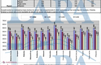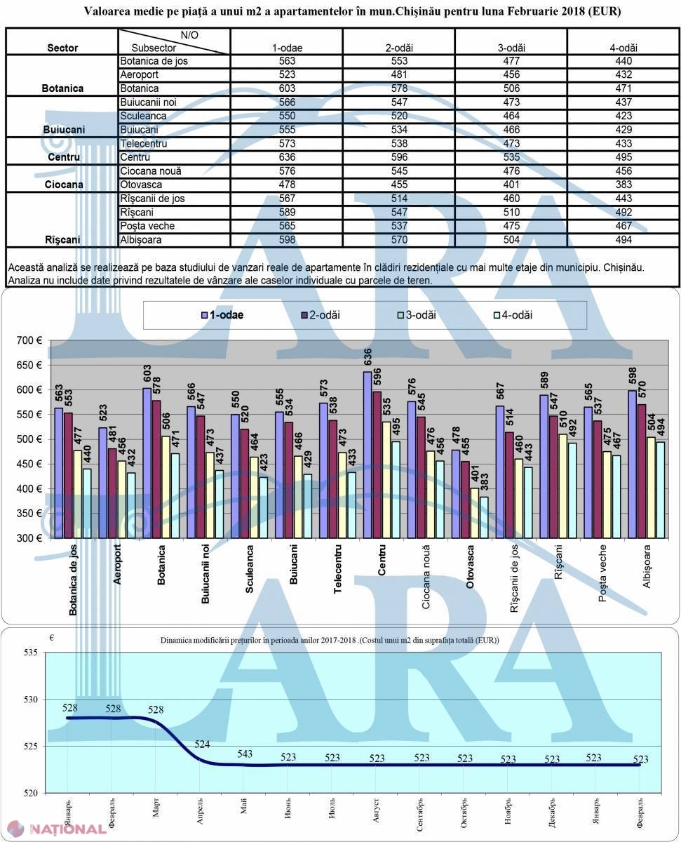 Potrivit Busei imobiliare „Lara”, în februarie curent, prețul mediu al unui metru pătrat a oscilat de la 401 la 635 de euro, în funcție de sector.