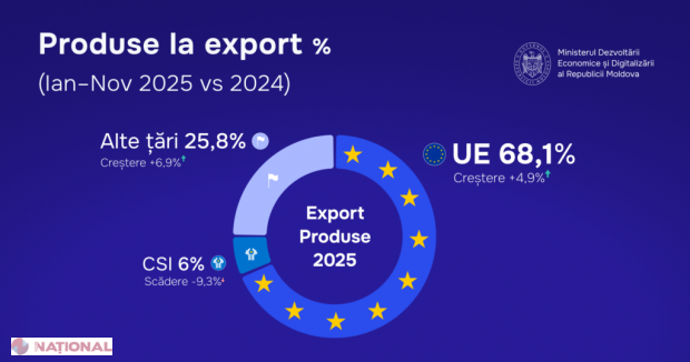 Exporturile Republicii Moldova au crescut cu 4,4% în ianuarie–noiembrie 2025, cu orientare tot mai accentuată spre piața UE
