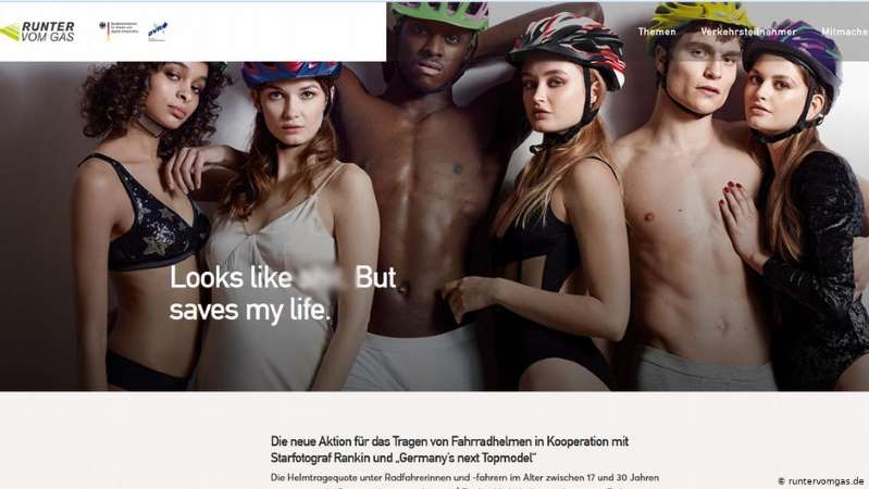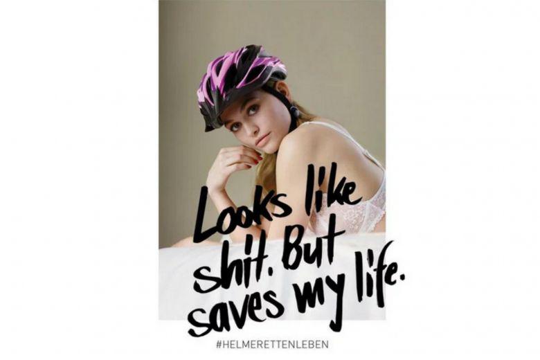 Însoţită de sloganul „arată ca naiba, dar îmi salvează viaţa”, reclama are în prim-plan o competitoare la concursul german Next Topmodel, aceasta purtând o cască de bicicletă mov şi un sutien dantelat.