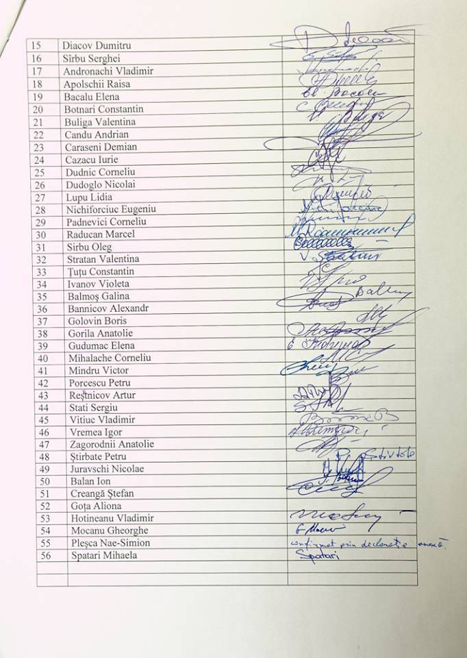 În lista actuală lipsește semnătura Alionei Goța, chiar dacă numele ei mai apare în aceasta.