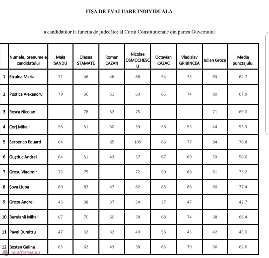 DOC // Comisia de la Guvern a ales PATRU candidaţi la funcția de judecător al Curții Constituționale. Printre aceştia se numără şi Vladimir Grosu, care a câştigat şi concursul de la Parlament