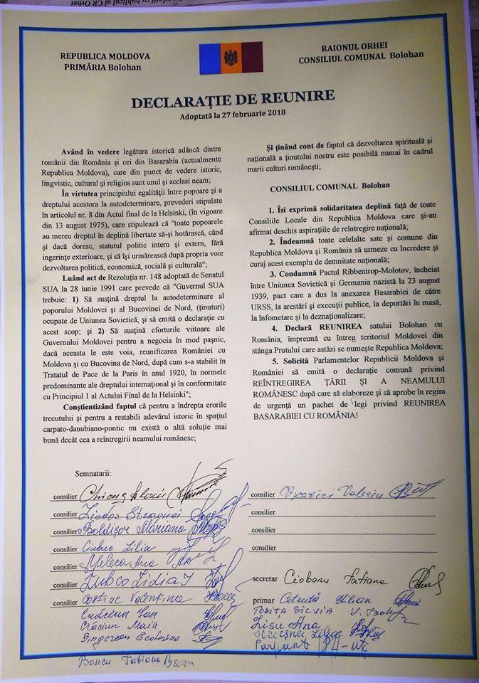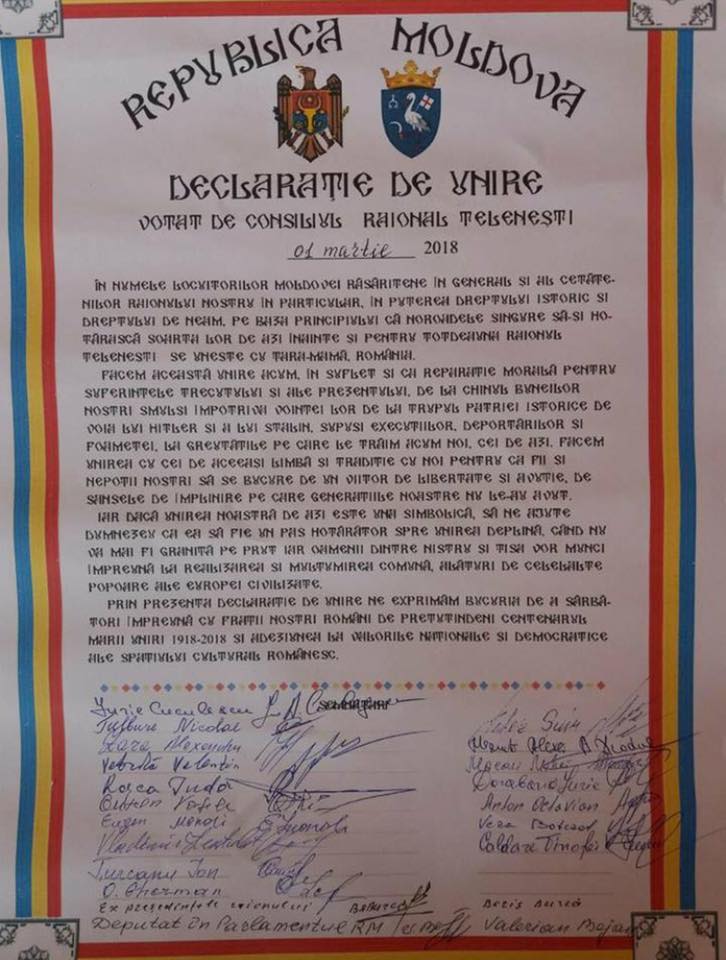 Astăzi și-au exprimat dorința de reîntregire a neamului românesc mai multe sate, dar și două consilii raionale, astfel numărul autorităților de nivelul doi care cer Unirea ajungând la trei.