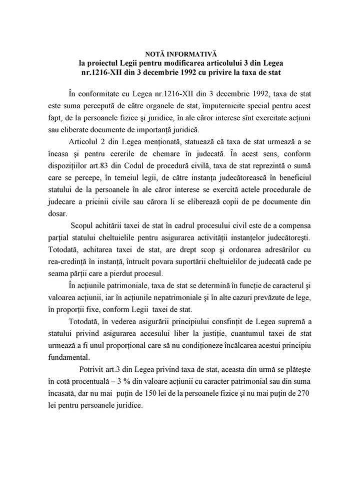 Potrivit lui Năstase, este vorba despre renumita modificare a Legii taxei de stat, ce a fost adoptată la 20.05.2010, prin care s-au plafonat taxa de stat în litigiile patrimoniale. „Ştiţi cine a înaintat acest proiect de lege? Este o persoană foarte cunoscută şi aflată în funcţie înaltă de stat azi – Alexandru Tănase, preşedintele Curţii Constituţionale”, menționează acesta.