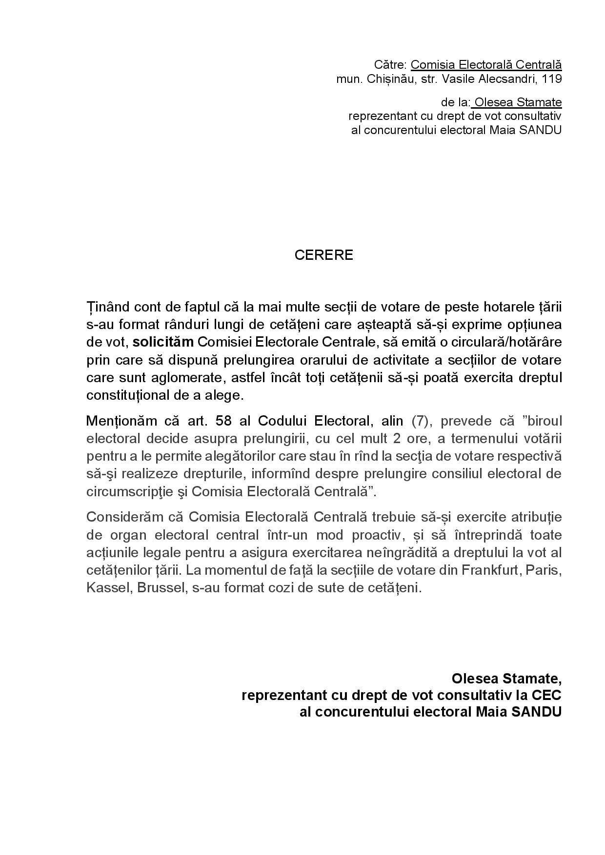„PAS consideră că CEC trebuie să-și exercite atribuțiile de organ electoral central într-un mod proactiv și să întreprindă toate acțiunile legale pentru a asigura exercitarea neîngrădită a dreptului la vot al cetățenilor. La secțiile de votare de la Frankfurt, Paris, Kassel, Bruxelles s-au format cozi din sute de cetățeni ai R. Moldova”, motivează PAS.