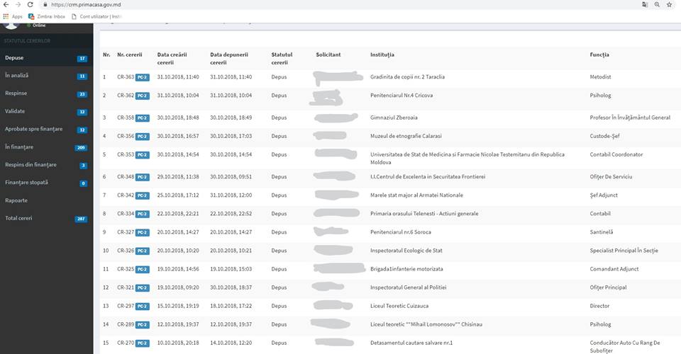 Potrivit datelor statistice prezentate de Chicu, cele mai multe cereri au fost înregistrate în ultimele trei luni. Astfel, în lunile aprilie-iunie, 167 de persoane au aplicat la program, în luna iulie s-au înregistrat 81 de cereri, august – 136, septembrie – 152 și în octombrie - 203.