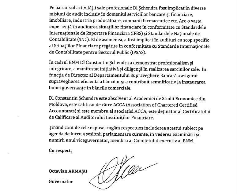 Guvernatorul Băncii Naționale a Moldovei (BNM), Octavian Armașu, propune, prin intermediul unui demers trimis la Parlament, desemnarea a doi viceguvernatori noi.