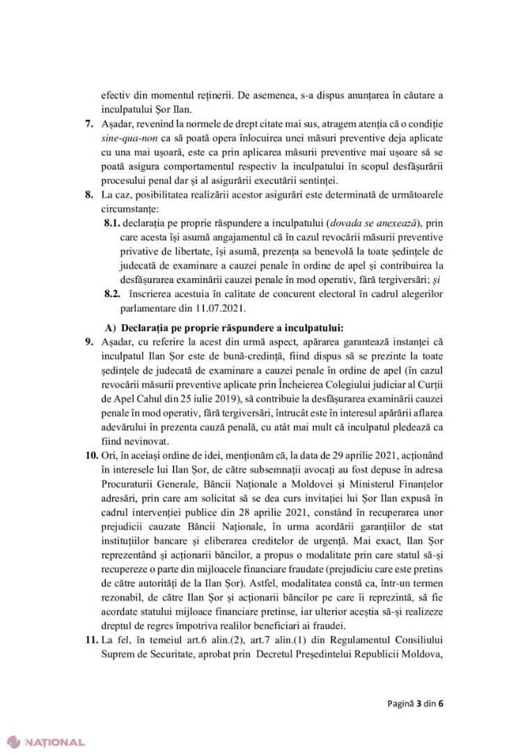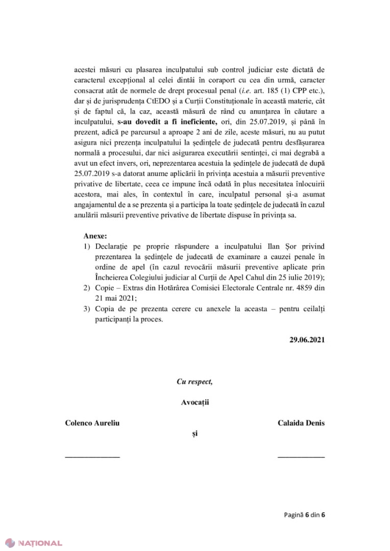 DOC // Șor cere să-i fie ANULAT mandatul de arest pe 7 iulie, pentru ca pe 8 iulie să se întâlnească cu alegătorii săi: „Pe 8 iulie, la ora 8:00, o să mă prezint la Procuratură pentru a depune depoziții, după care o să merg la alegători”