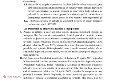 Într-un mesaj video publicat pe pagina sa de Facebook, Ilan Șor a subliniat că insistă asupra anulării mandatului de arestare nu doar pentru a putea participa în campania electorală, ci și pentru a se putea prezenta în instanța de judecată și la Procuratură, pentru a face depoziții în dosarul fraudei bancare. De asemenea, el spune că va putea astfel începe și negocierile, din numele acționarilor, referitoare la răscumpărarea portofoliului băncilor lichidate și compensarea daunelor. În plus, Șor a reamintit că, în 2015, i-a fost oferită posibilitatea de a se implica în campania electorală, fiind eliberat atunci din arest la domiciliu.