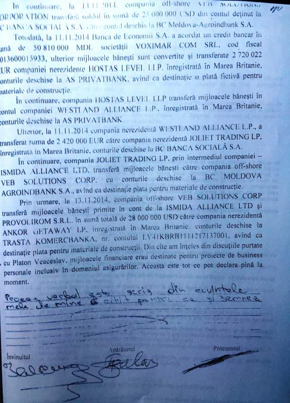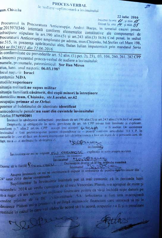 Controversatul primar de Orhei, Ilan Șor, plasat acum în arest la domiciliu, a scris un nou autodenunț, în timp ce se afla în izolatorul CNA, în care povestește cum a scos din Banca de Economii, în noiembrie 2014, zeci de milioane de euro și cum le-a transferat pe conturile unor firme off-shore, la „rugămintea vechiului săi cunoscut”, Veaceslav Platon.