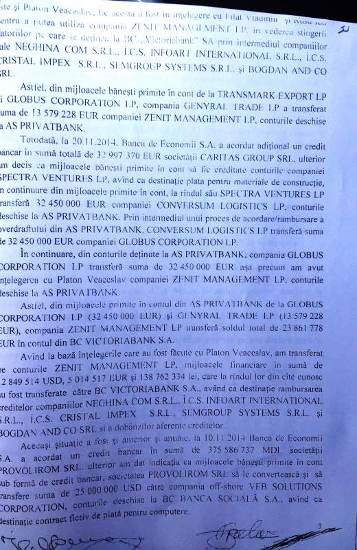 Șor a calculat că această afacere va fi aduce profit Băncii de Economii și, pe 19 noiembrie 2014, a transferat 20 de milioane de euro de la BEM, iar peste o zi - încă 32 de milioane de euro.
