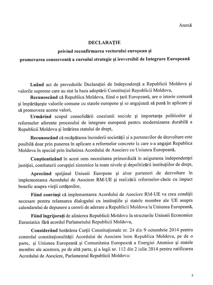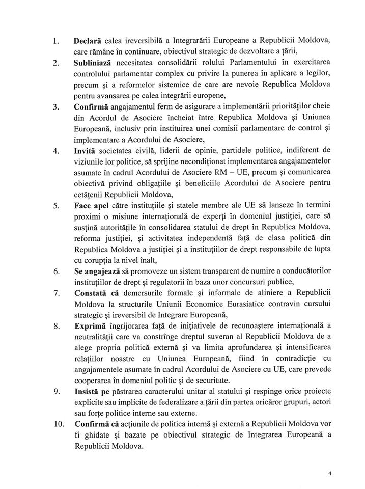 DOC // Textul Declarației pentru reconfirmarea ireversibilității VECTORULUI EUROPEAN al R. Moldova. „PD a avut o contribuție consistentă la elaborarea documentului, dar au evitat să ne întâlnim. Ieri-noapte am înțeles de ce”