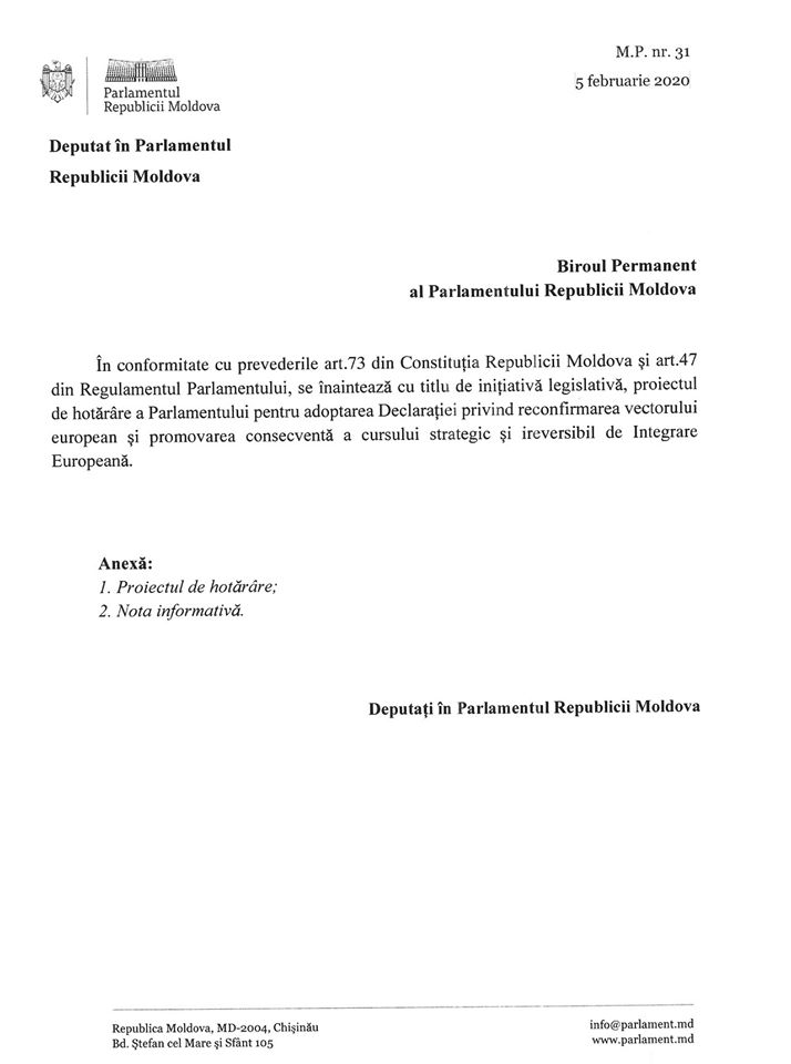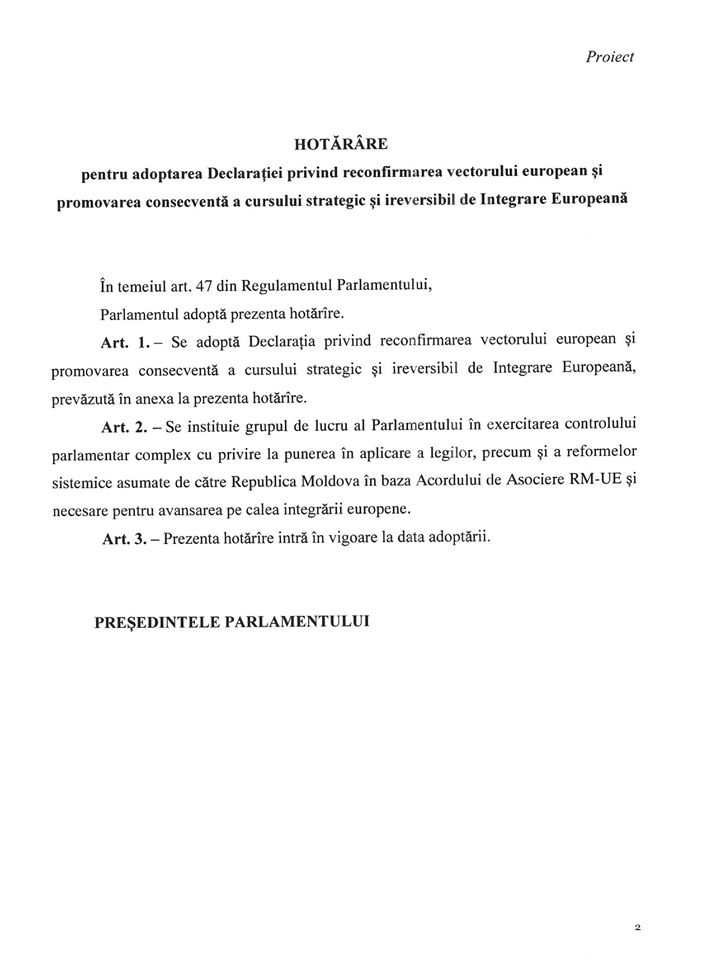 Facebook Vicepreședintele Parlamentului R. Moldova, deputatul PAS Mihai Popșoi, a publicat proiectul de Hotărâre a Parlamentului pentru adoptarea Declarației privind reconfirmarea vectorului european și promovarea consecventă a cursului strategic și ireversibil de integrare europeană a R. Moldova.