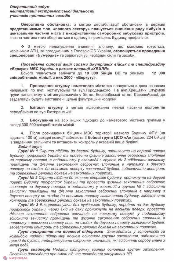 Prim-adjunctul comitetului luptei contra crimei organizate și corupției al Radei Supreme, Ghenadi Moskali, a făcut public un document care pevedea un plan organizat de curățare a Maidanului de protestatari.