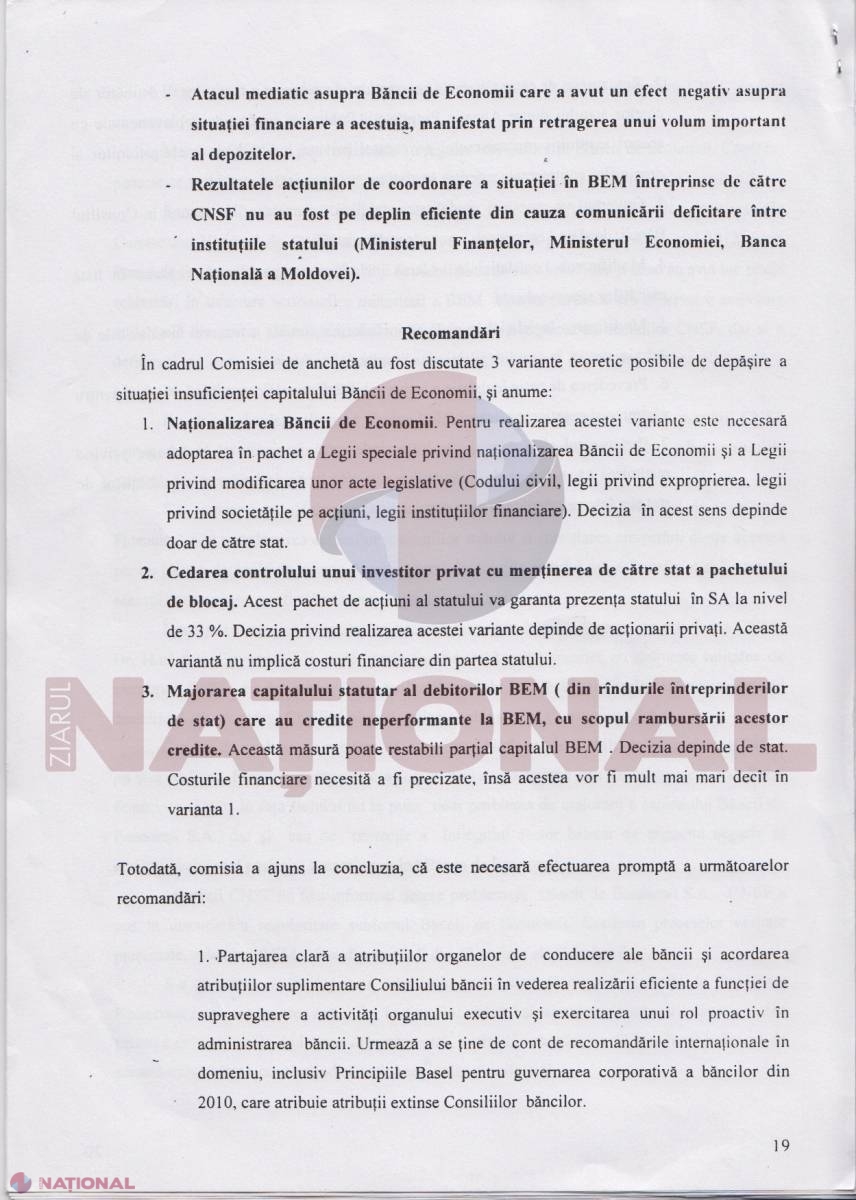 Ziarul NAȚIONAL a intrat în posesia raportului comisiei de anchetă privind examinarea modului de administrare a pachetului de acțiuni de la Banca de Economii. Documentul conține mai multe informații despre cei care se fac vinovați de situația de la BEM.