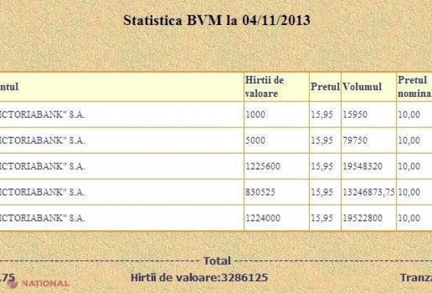 Tranzacții de peste 120 de MILIOANE de lei în TIMP-RECORD cu acțiunile „Victoriabank”