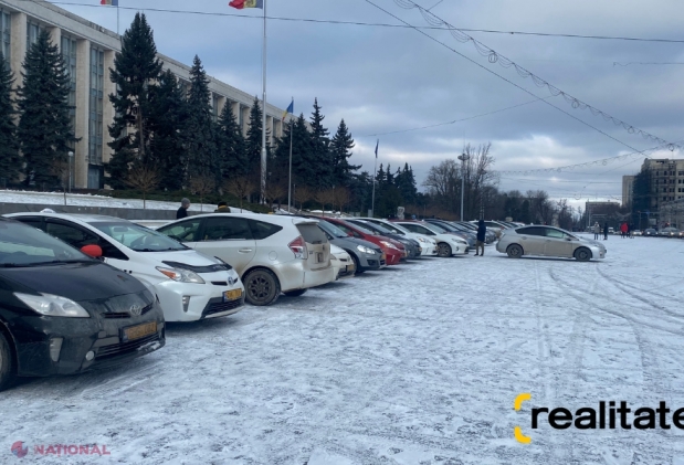 Zeci de taximetriști protestează în Piața Marii Adunări Naționale (PMAN), în semn de prot...