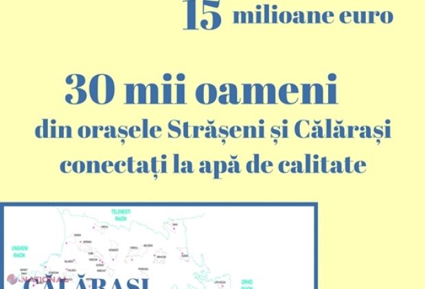 Peste 170 de mii de locuitori din raioanele Strășeni și Călărași vor avea acces la apă po...