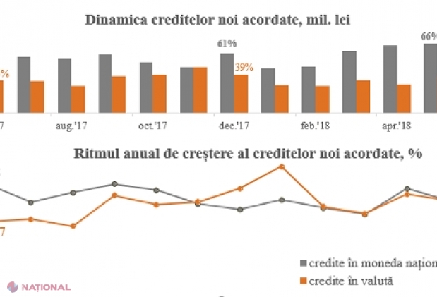 Creditele noi acordate în luna iunie curent au constituit 2,604 de miliarde de lei, în crește...