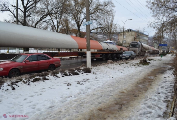 Mai multe camioane de mare tonaj, care transportau două turbine eoliene dezasamblate, au trav...